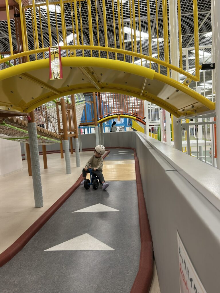 他にもおままごと・積み木・ブリオ・絵本・2歳未満専用スペース・キックバイクサーキットなど、年齢に関係なく楽しめる遊びが盛りだくさんです。息子は毎回「もっと遊びたい!」と帰り際に泣くほど(笑)。