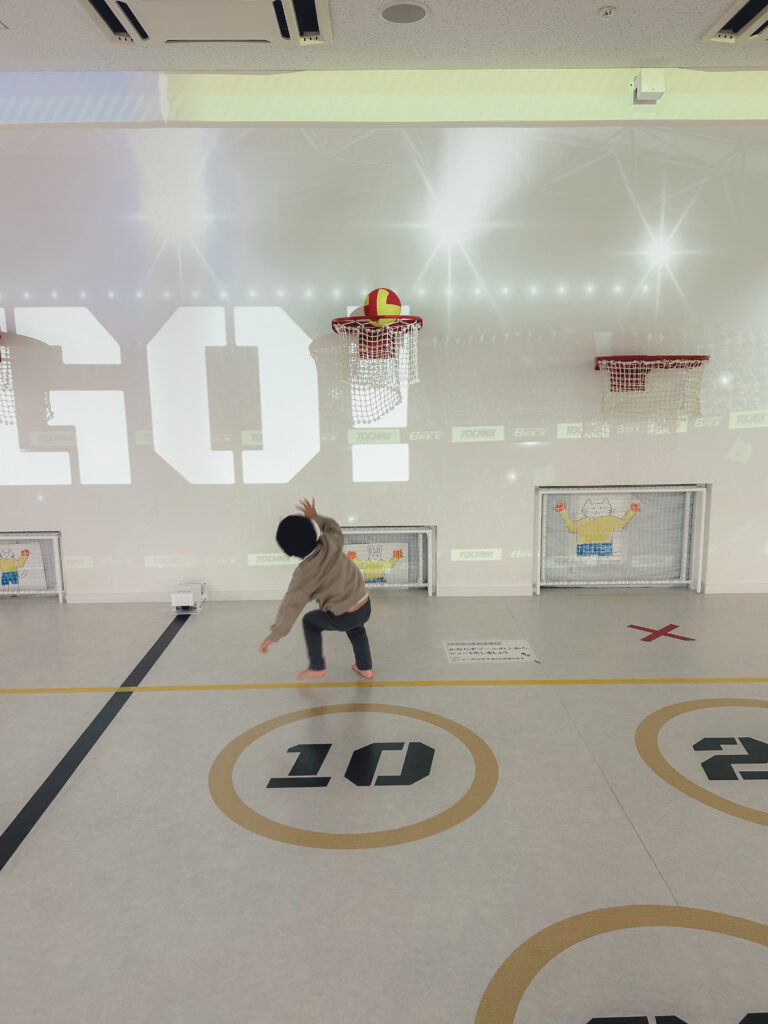 全長25mの大型アスレチック遊具には丸太のつり橋・縄はしご・大きな滑り台など があり、子どもたちが体を思いきり動かせます。高さ2.5m・幅9mのクライミングウォールや、プロジェクションマッピングを使ったバスケットボール・サッカー体験 など、無料とは思えないクオリティ!